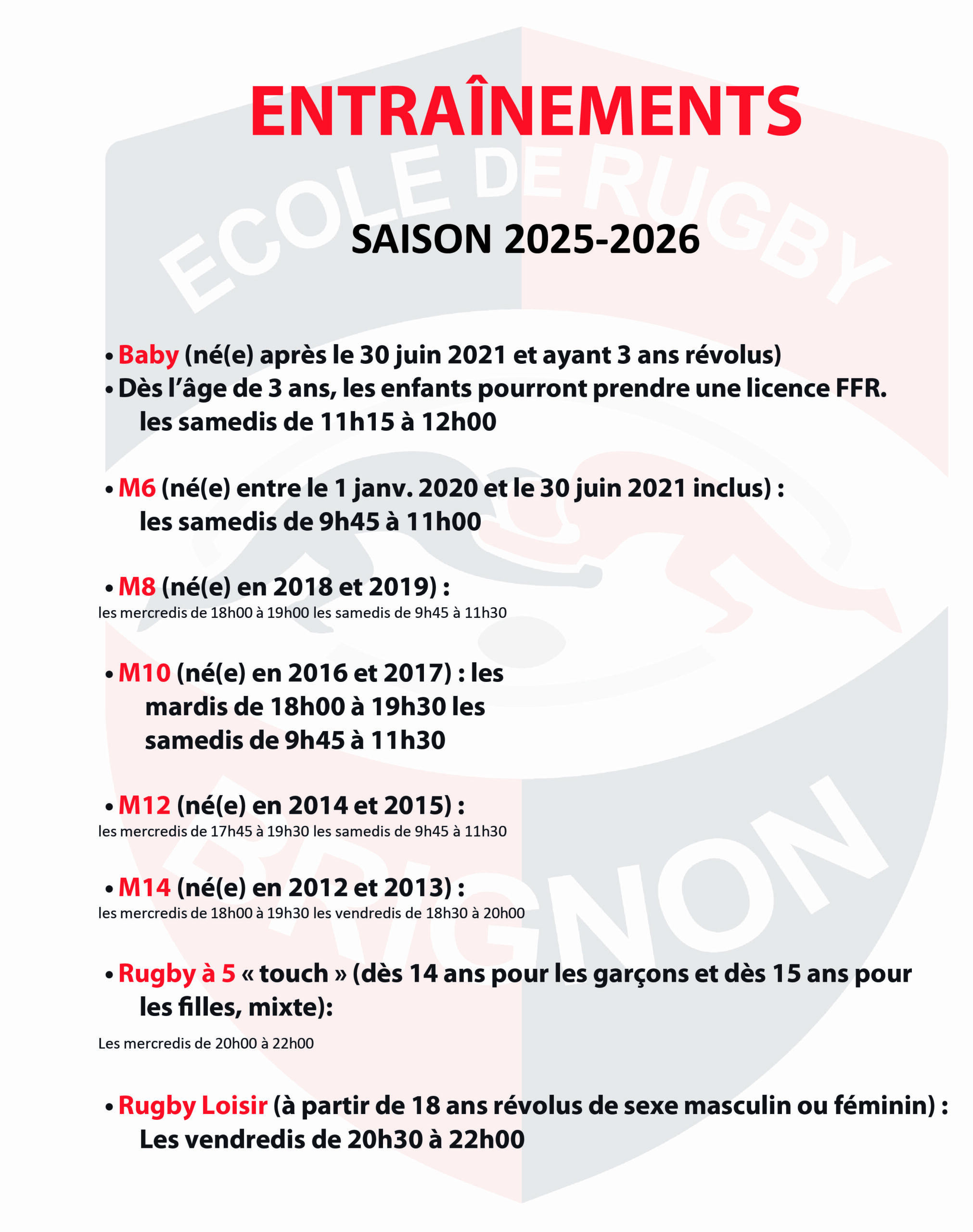 Entrainements Saison 2025/2026